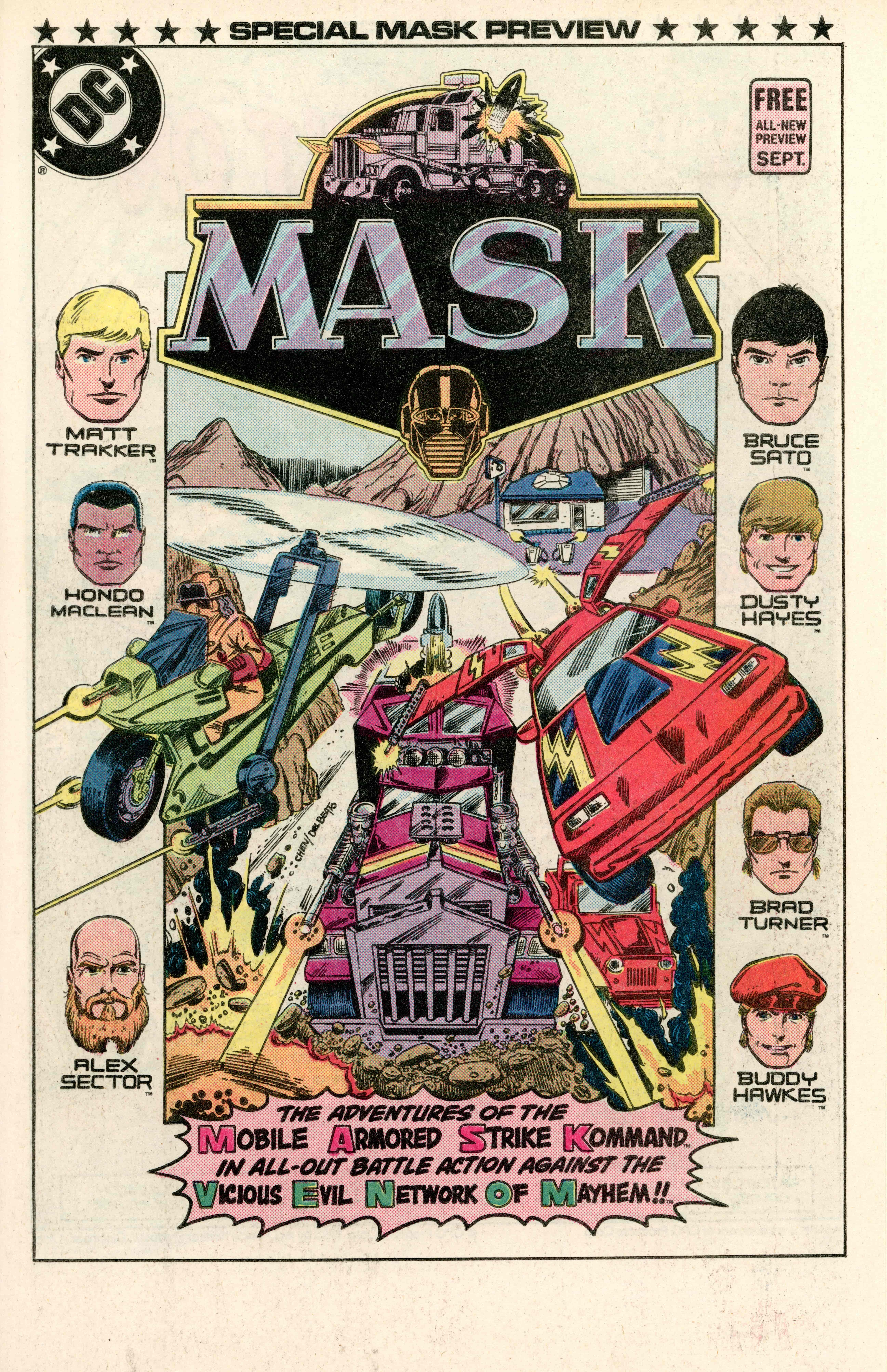 DC's first foray into publishing M.A.S.K comics was the Special MASK Preview comic that was inserted in DC comics from September 1985 to November 1985. This was followed by a 4 part mini series from December 1985 to March 1986.