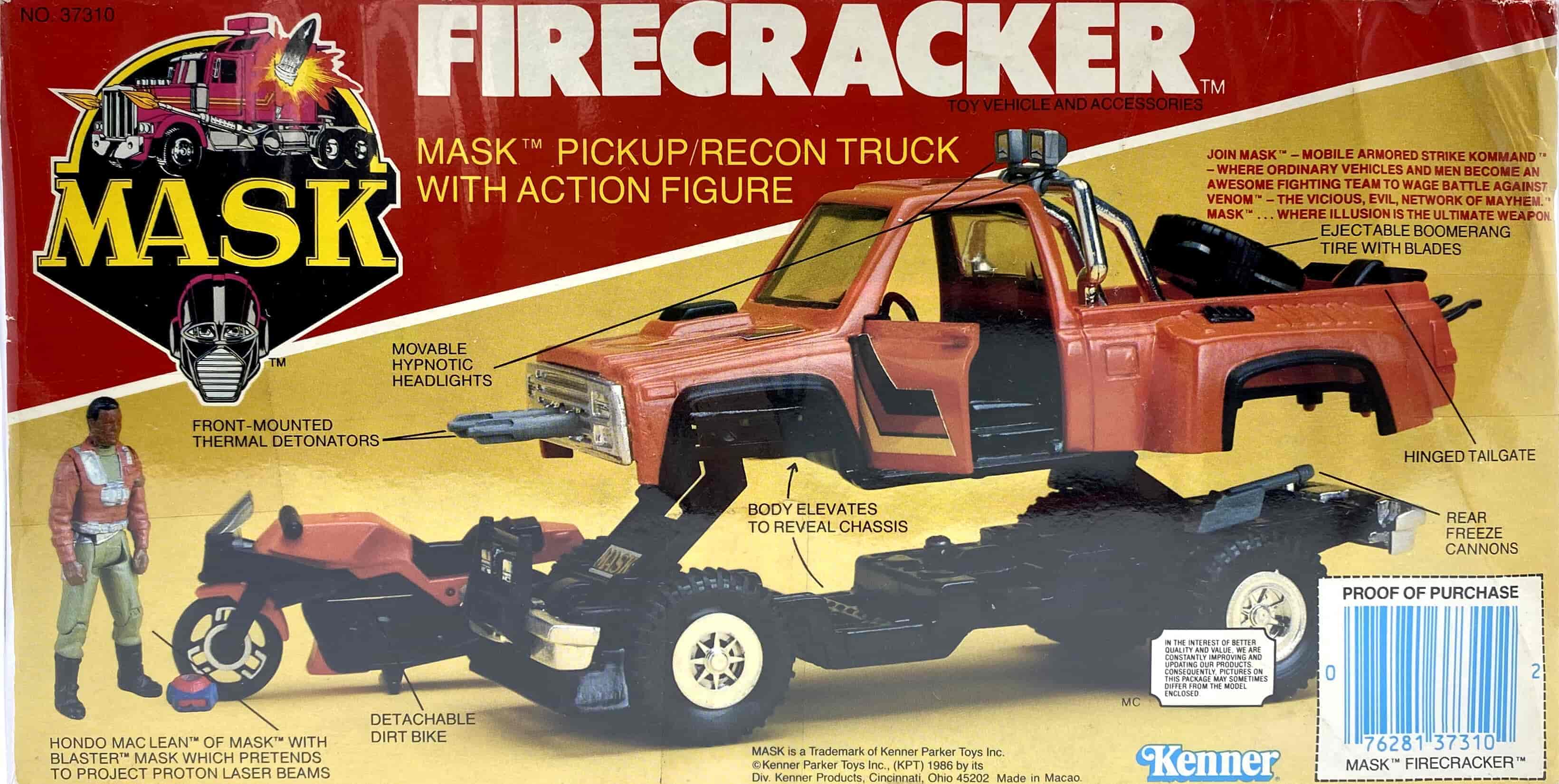 Specs: Body elevates to reveal chassis, hinged tailgate, detachable bike
